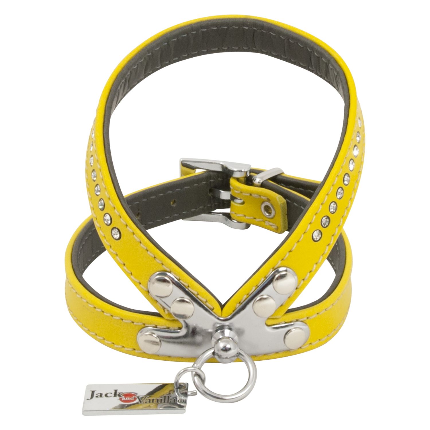 Fijne hondentuigjes in gevoerd Nappa-leder met Strass-steentjes. Deze tuigjes met K-plaatje hebben een makkelijke pasvorm.