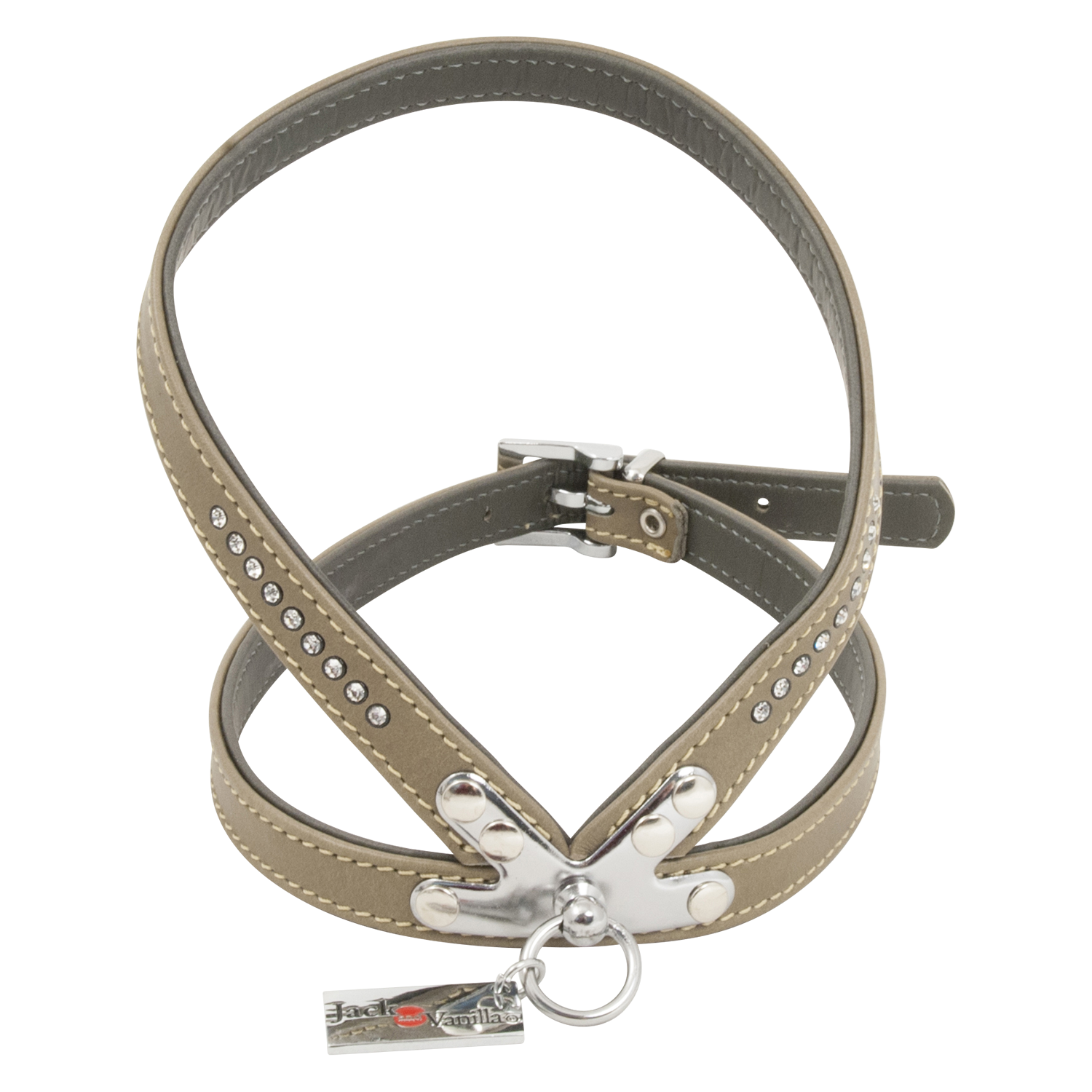 Fijne hondentuigjes in gevoerd Nappa-leder met Strass-steentjes. Deze tuigjes met K-plaatje hebben een makkelijke pasvorm.