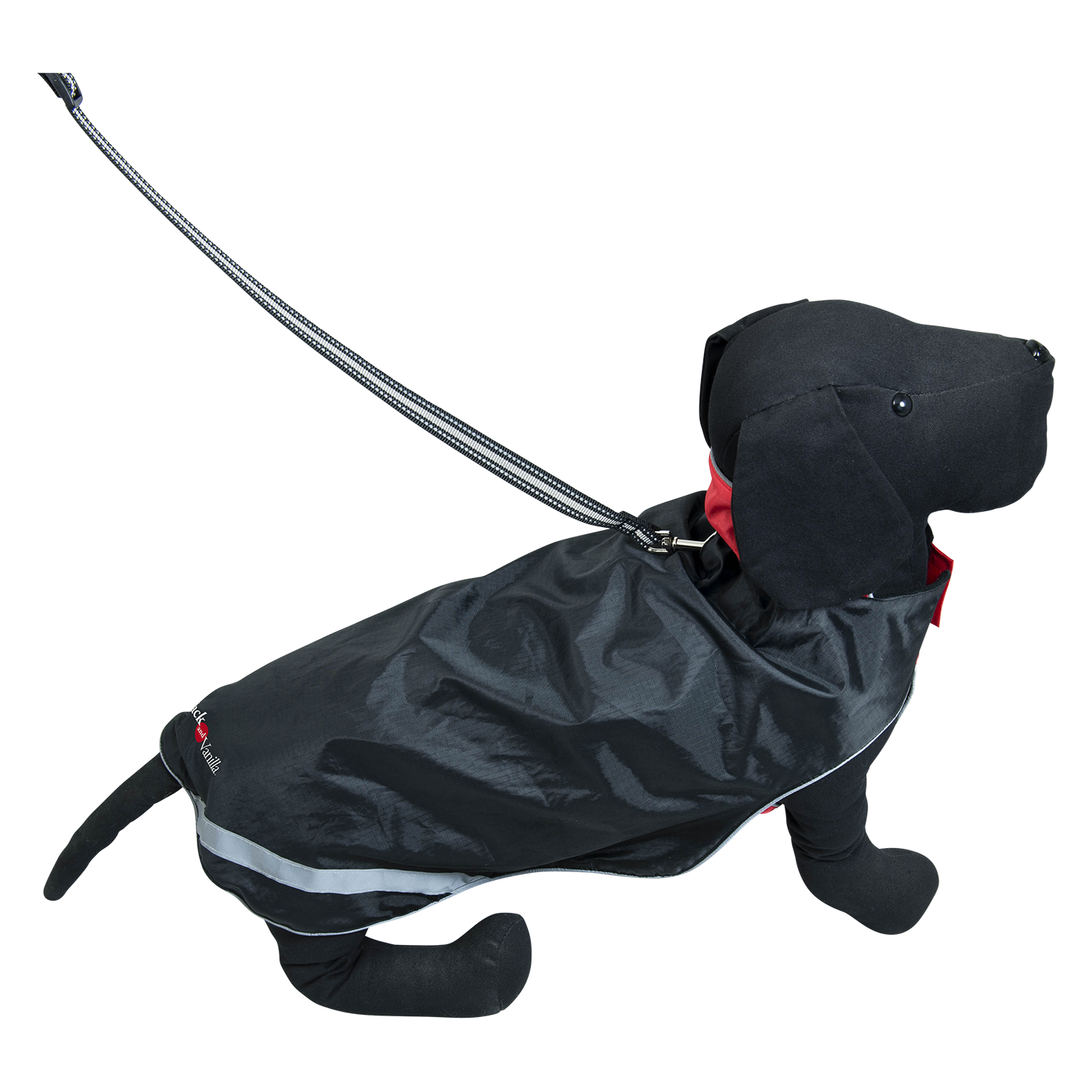 Dankzij de brede velcrosluiting rond de borst en de elastieken rond de achterpoten, heeft dit regenjasje